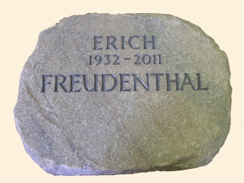 PROFILIERTER SANDSTEIN MIT ENGLISCHER SCHREIBSCHRIFT.